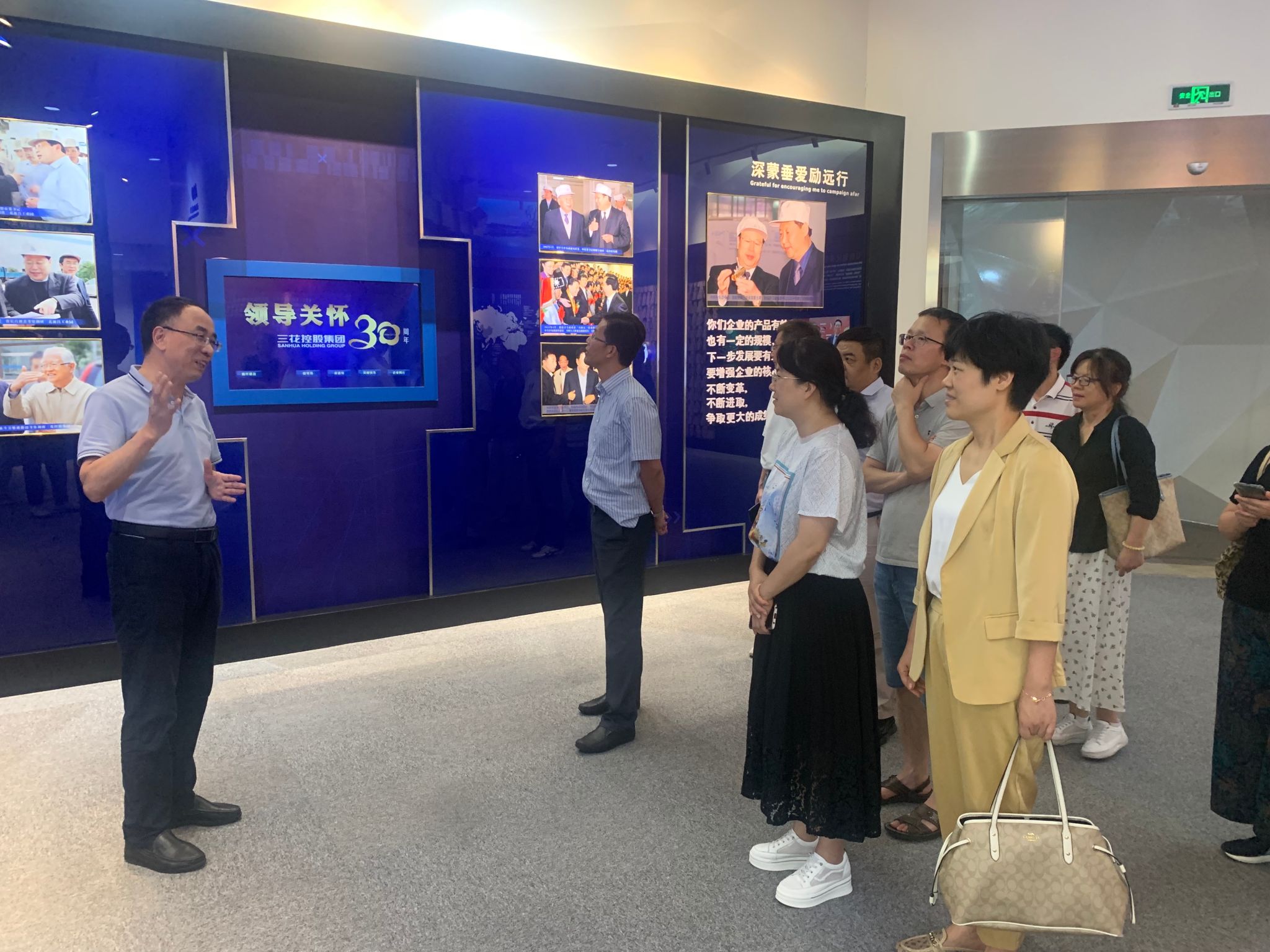 考察交流团先后赴新昌县智能装备小镇、浙江三花控股集团公司和浙江康健材料科技有限公司进行参观交流,对县域科技创新的“新昌模式”、企业发展现状、主导产业、技术特色和人才需求等方面进行了深入了解。新昌中国计量大学创新创业研究院由学校与新昌县人民政府共建,主要从事金属功能材料与制品、工业废水处理与检测等方面的研发与公共检测等服务,研究院院长王疆瑛详细介绍了研究院的日常管理、实验设备、科研成果、师生团队等情况。三花集团在1994年成立时提出“科技之花、管理之花、人才之花”的发展内涵,创造在四通换向阀、电子膨胀阀和电磁阀等主导产品全球市场占有率超过50%的卓越发展成就。在康健公司交流时,公司总经理石康对中国计量大学一直以来为公司发展做出的贡献表示感谢,一个缥缈的弱磁需求,一个孜孜钻研的教师,为企业开创了新的发展之路,谱写了动人的计量人故事。