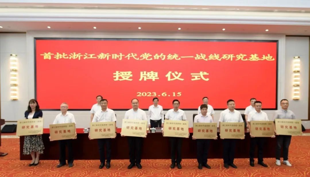 为深化学习贯彻习近平新时代中国特色社会主义思想主题教育,推动学习贯彻习近平总书记关于做好新时代党的统一战线工作的重要思想走深走实,6月15日下午,首批浙江新时代党的统一战线研究基地授牌仪式在省社会主义学院举行。我校成功入选首批浙江新时代党的统一战线研究基地。
