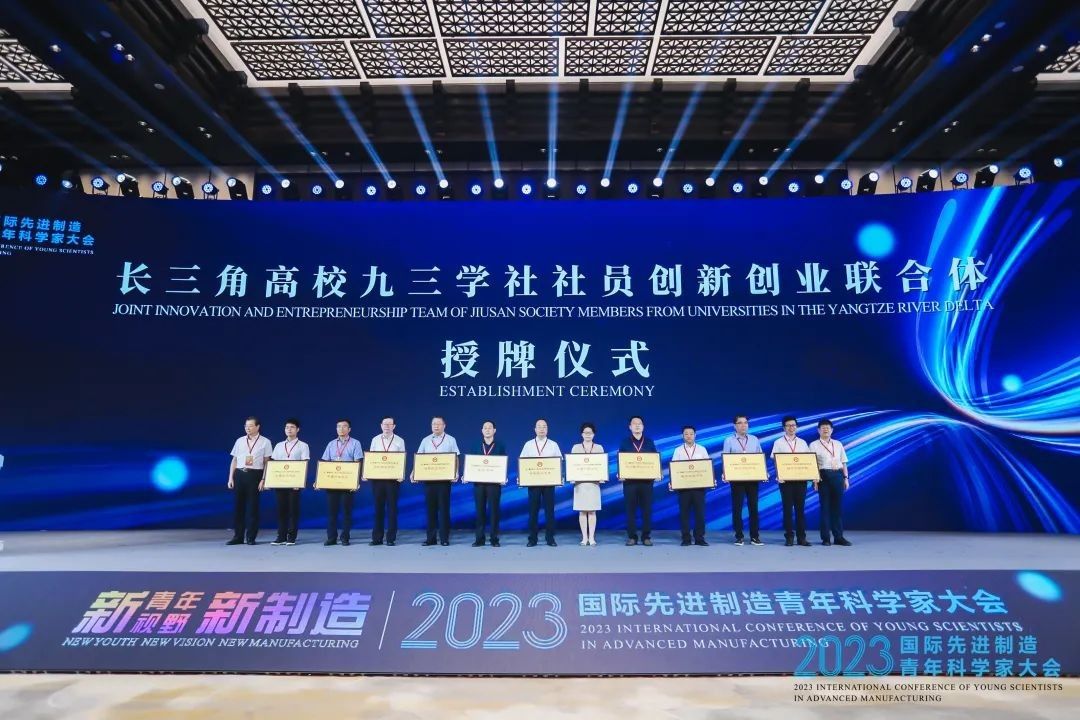 会上还举行了长三角高校九三学社社员创新创业联合体授牌仪式。据悉,联合体由上海交通大学、南京航空航天大学、东华大学、华东理工大学、杭州电子科技大学、中国计量大学、合肥工业大学、安徽理工大学、苏州大学、上海财经大学、南京工程学院、绍兴文理学院、湖州师范学院等13家高校的九三学社基层组织组成,旨在为长三角地区高校各学科领域的社员创新创业、成果转化等提供全方位服务。
