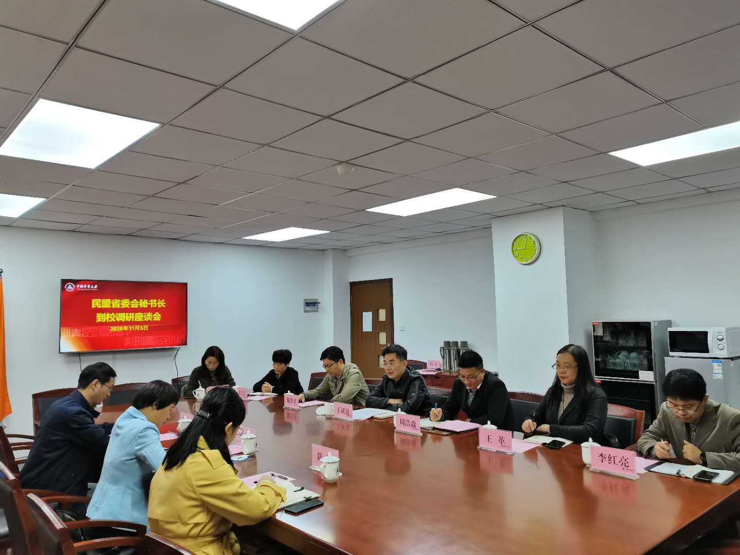 11月5日上午,民盟省委会秘书长何志芬一行来校调研民盟工作,校党委委员,组织部、统战部部长王斌锐出席座谈会,学校民盟副主委周浩淼、戴贤君及盟员代表参加座谈。