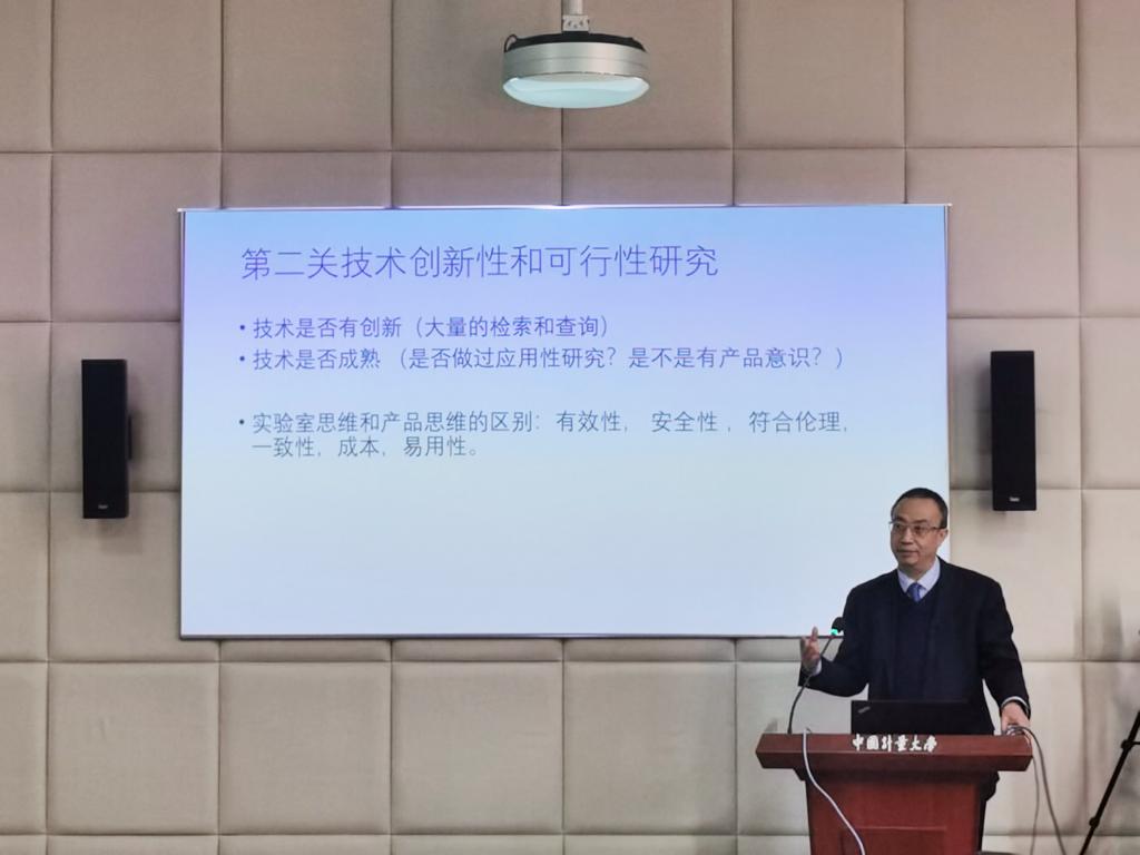 衷兴华老师围绕“科学家技术转化和创新创业”进行了全面的讲解。他分享了科学家技术转化和创新创业方面的心得体会,并根据自己多年创业经历,就科学家创业应该从哪里着手,技术创新性和可行性的研究、知识产权的保护、市场战略性定位等内容进行了精彩的阐述。尤其在团队搭建、资源整合等关键问题方面,他结合多年技术转化的众多成功案例,进行了具体分析。与会教师就科学技术转化等问题和主讲老师进行了深入交流。
