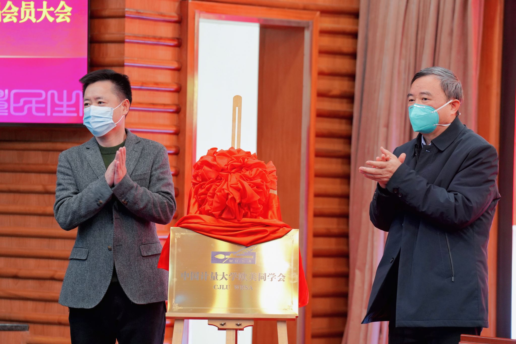 会上举行了中国计量大学欧美同学会成立仪式,宋宏伟和肖刚共同揭牌。