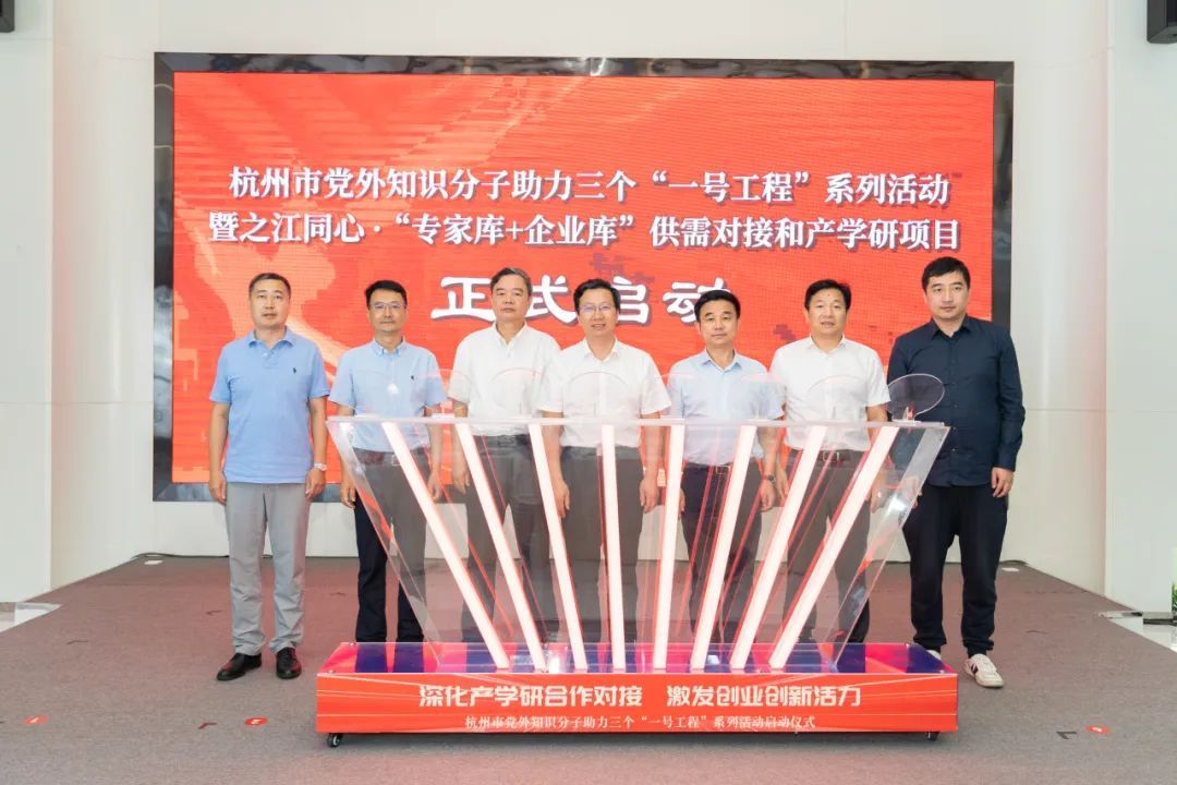 深化产学研合作对接,激发创业创新活力。9月20日下午,杭州市党外知识分子助力三个“一号工程”系列活动启动仪式在杭州钱塘区国际创博中心举行。省委统战部副部长王利月,杭州市委统战部部务会议成员、二级巡视员胡德斌,省、市、区委统战部相关负责人及知联会成员代表,有关政府部门、平台、高校、科研院所、企业代表共100余人参加活动。学校党委副书记肖刚带队参加启动仪式。