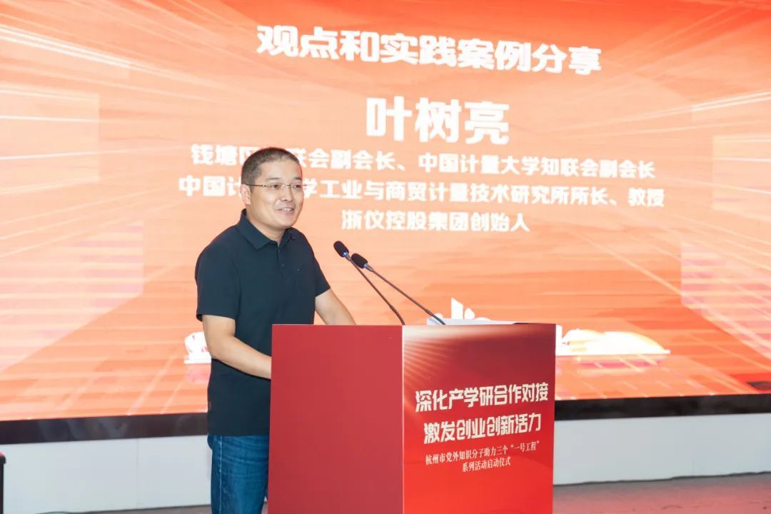 启动仪式上,我校科技成果转移中心主任战国科结合学校相关工作,分享了高校产学研合作及技术成果转化发展情况。我校知联会副会长、工业与商贸计量技术研究所所长、浙仪控股集团创始人叶树亮教授结合自己创业经历,分享了技术产业化落地与行业应用创新情况。