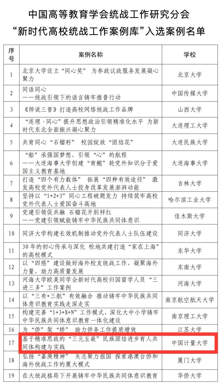 近日,中国高等教育学会统战工作研究分会公布了“新时代高校统战工作案例库”入选案例名单,我校人文与外语学院的《基于精准思政的“三元五嵌”民族团结进步育人共同体构建与实践》入选其中。本次案例征集活动于2024年10月启动,经学校申报、专家评审,全国包括北京大学、同济大学等30个学校的案例入选。