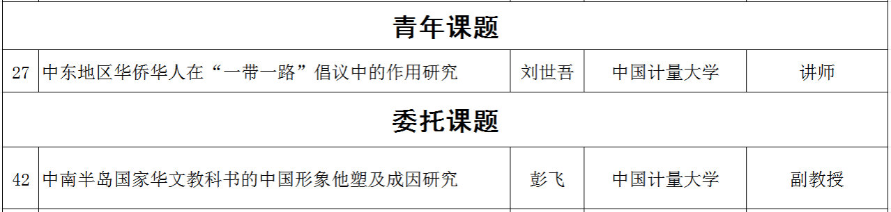 4月25日,2024—2026年度中国侨联课题立项结果公布,我校喜获2项课题立项,为历年首次获批。其中,马克思主义学院刘世吾老师申报的《中东地区华侨华人在“一带一路”倡议中的作用研究》课题获批青年课题立项,人文与外语学院彭飞老师申报的《中南半岛国家华文教科书的中国形象他塑及成因研究》课题获批委托课题立项。