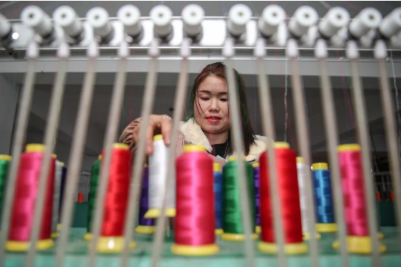 30多年来,统一战线发挥人才荟萃、智力密集、联系广泛的优势,全方位、立体化、多层次参与贵州省毕节试验区建设,助推打赢脱贫攻坚战和全面建成小康社会。图为毕节市“绣娘”在统一战线帮扶成立的刺绣加工车间内工作。中央统战部供图